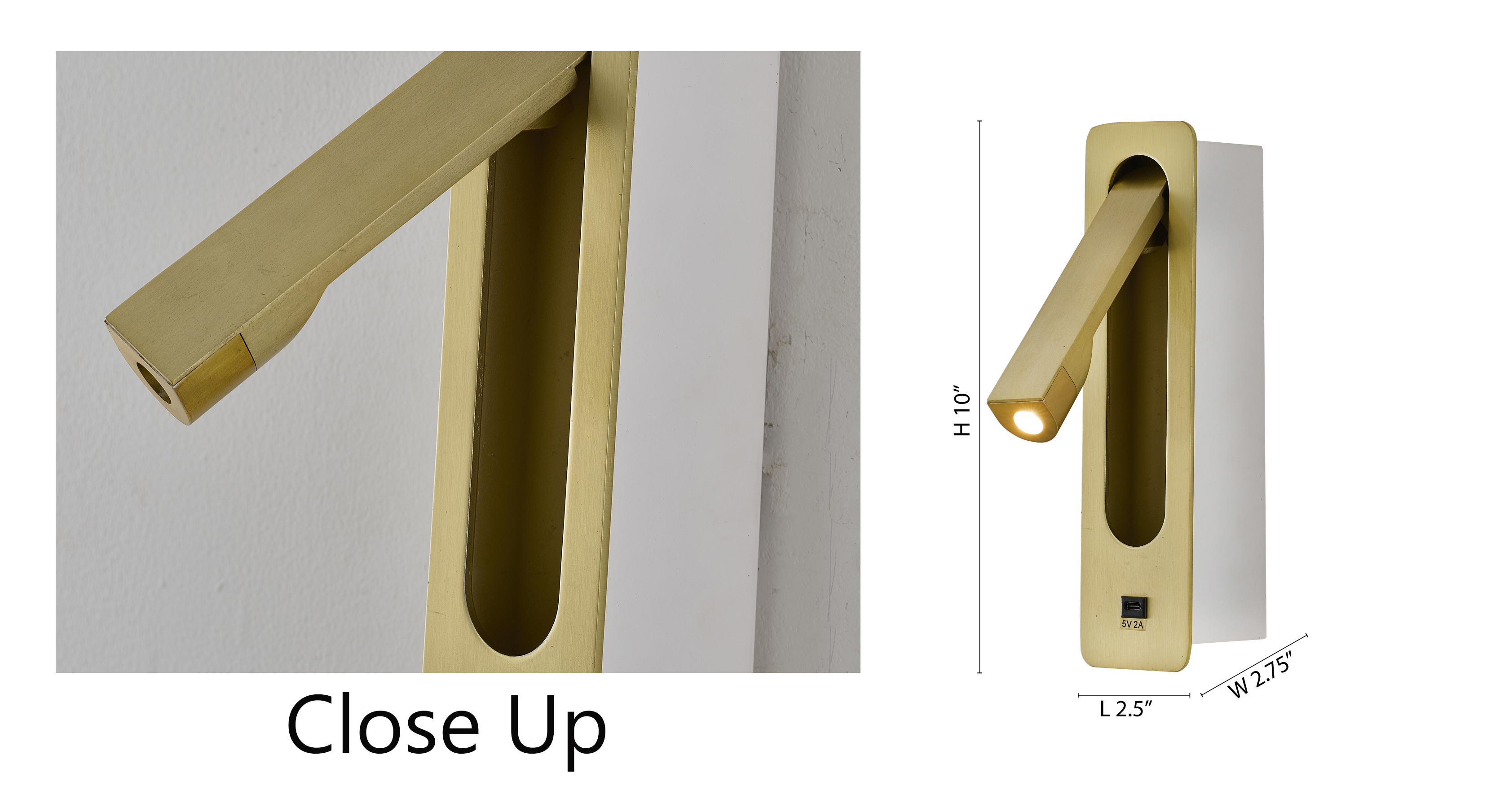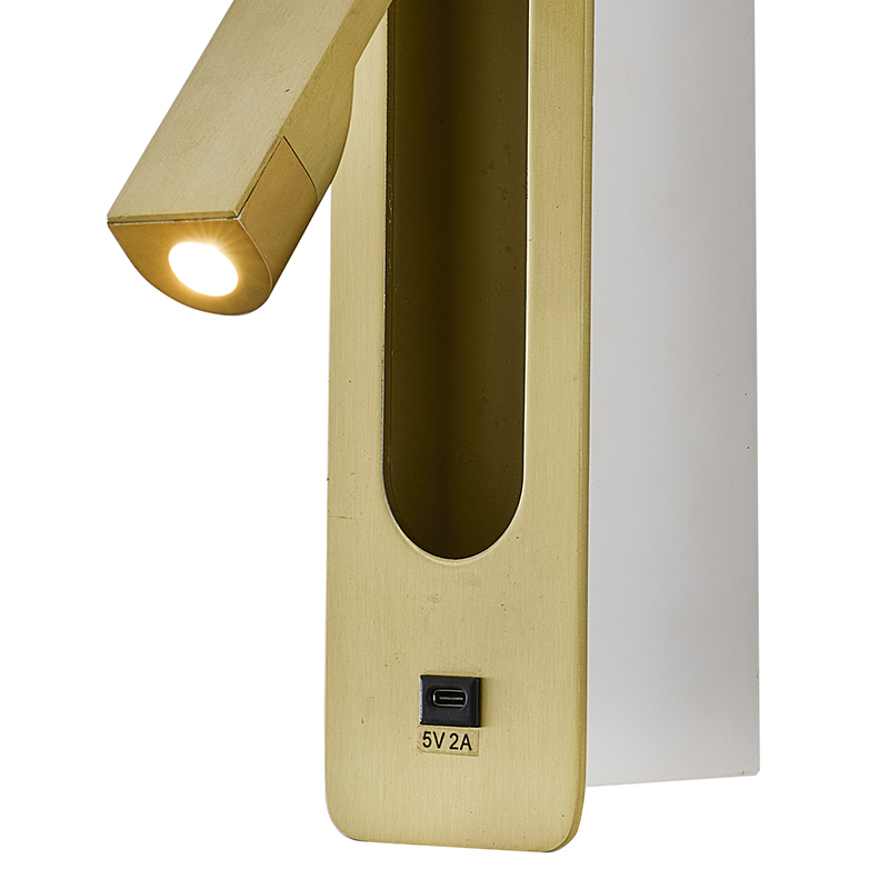 1-LIGHT STAIN BRASS METAL LED WALL LIGHTING WITH CLEAR FROSTED LENS AND ONE USB PORT