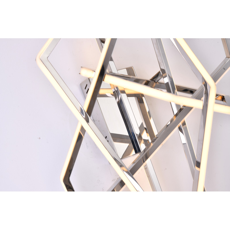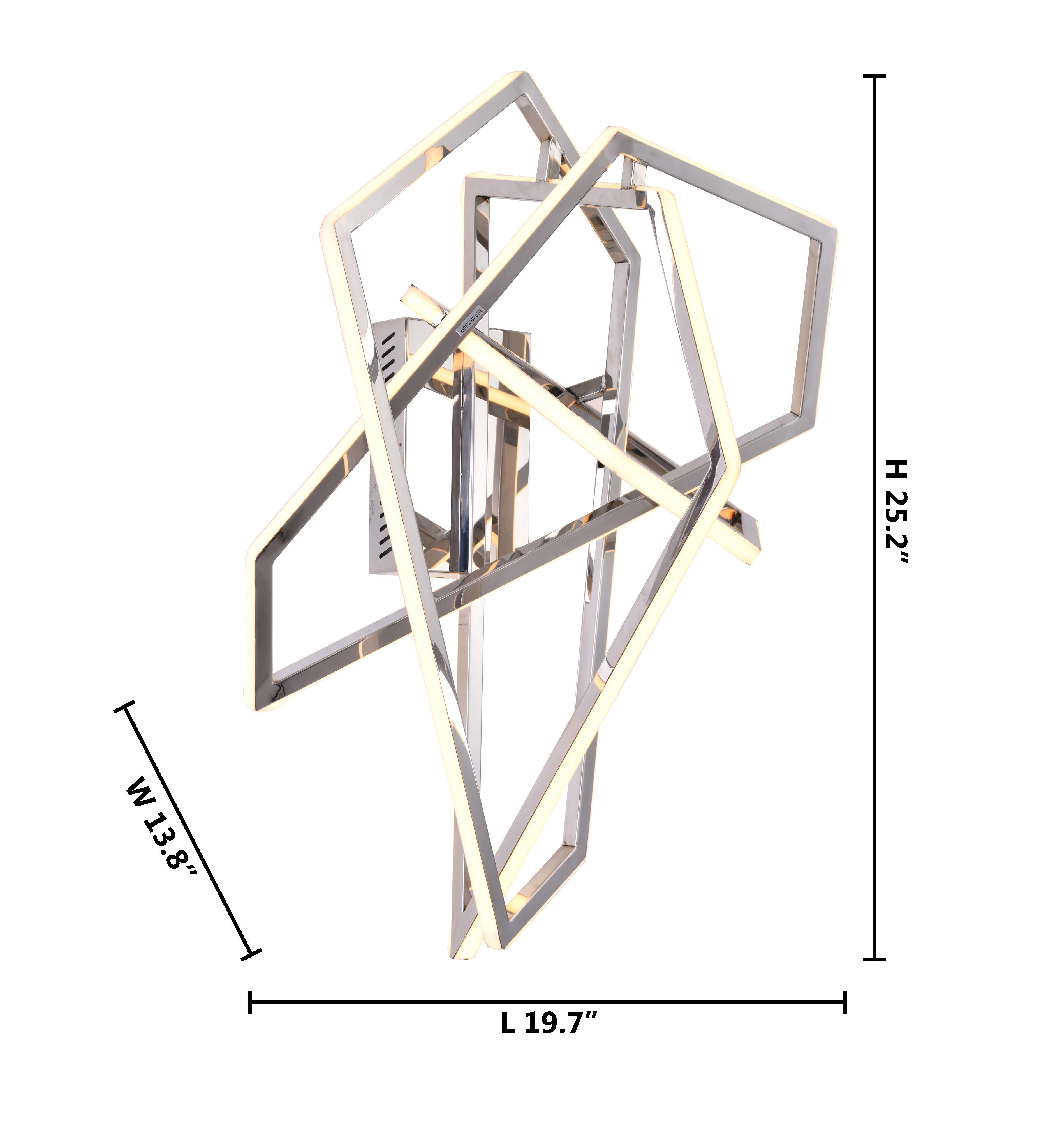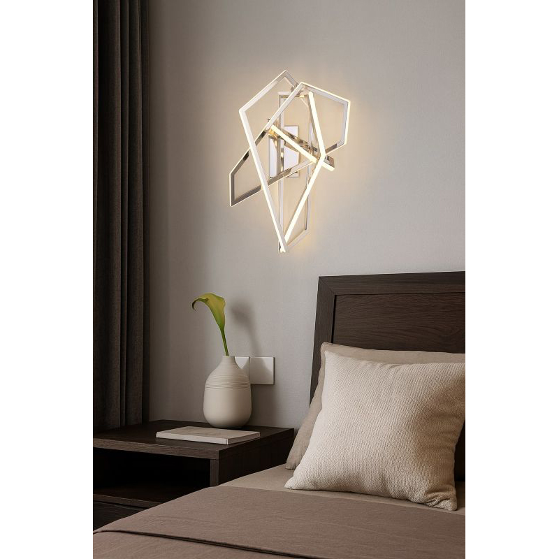 A CHROME STAINLESS STEEL GEOMETRIC LED WALL SCONCE WITH AN ACRYLIC DIFFUSER