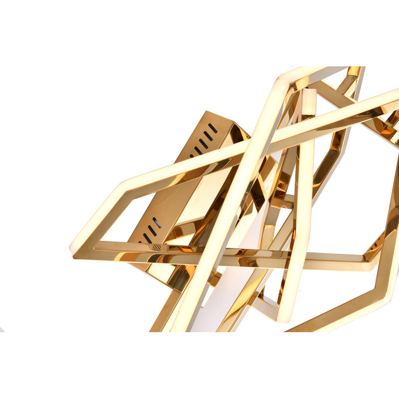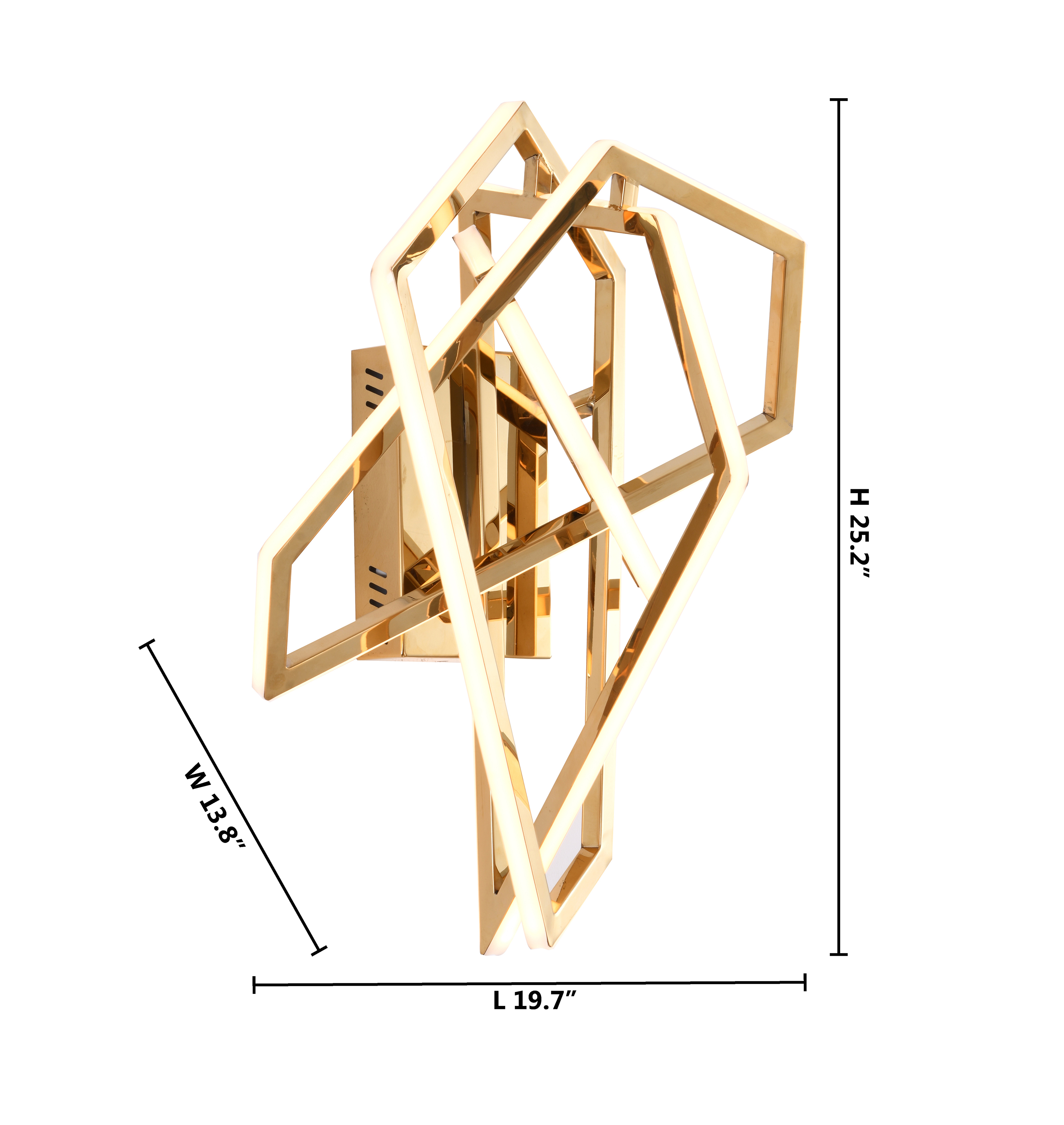 A GOLD STAINLESS STEEL GEOMETRIC LED WALL SCONCE WITH A WHITE ACRYLIC DIFFUSER