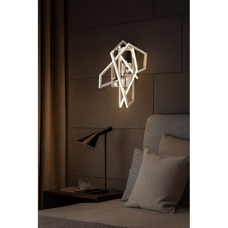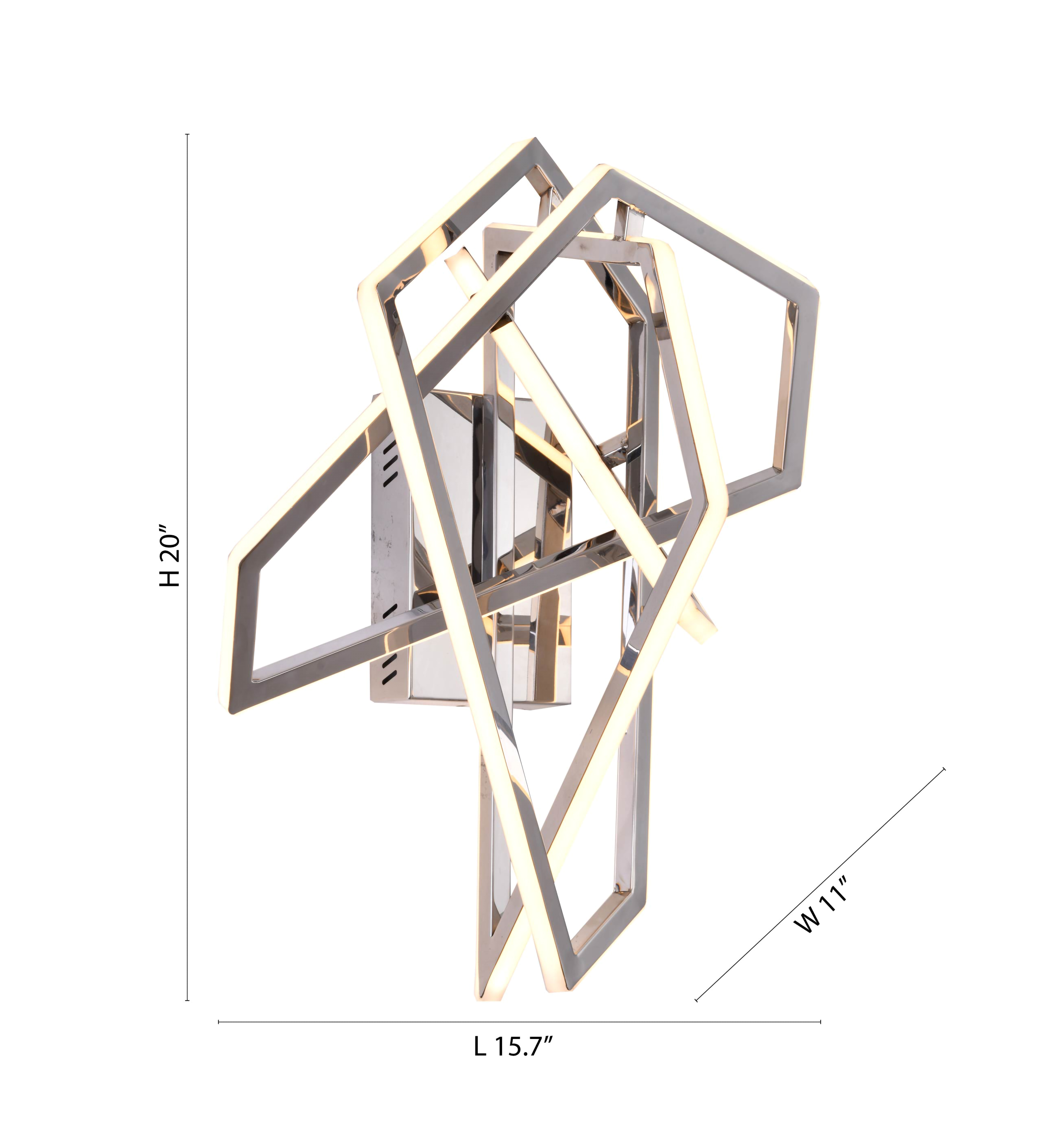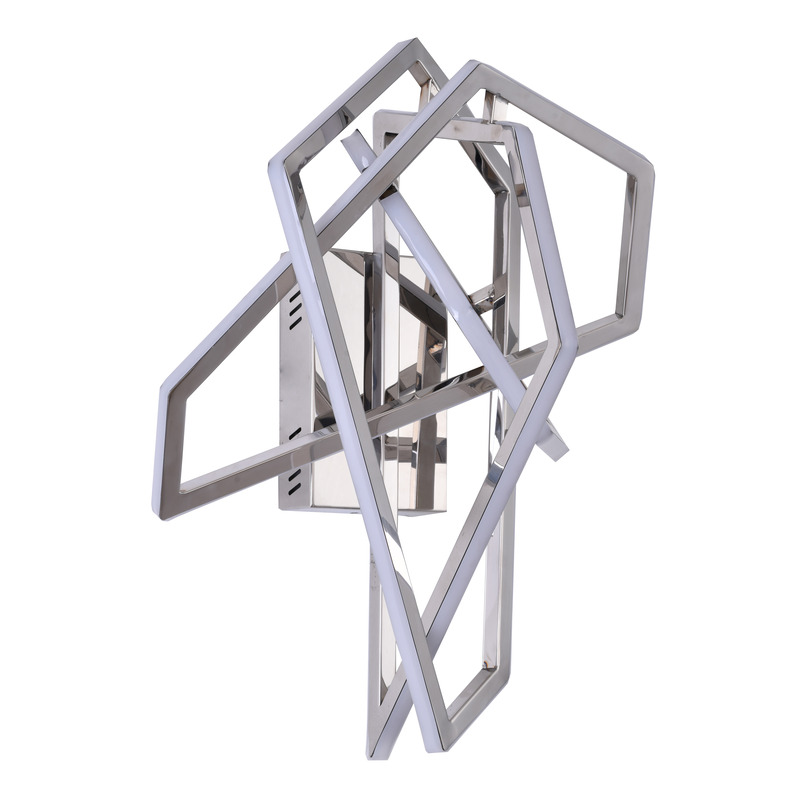 A CHROME STAINLESS STEEL GEOMETRIC WALL SCONCE WITH AN ACRYLIC DIFFUSER