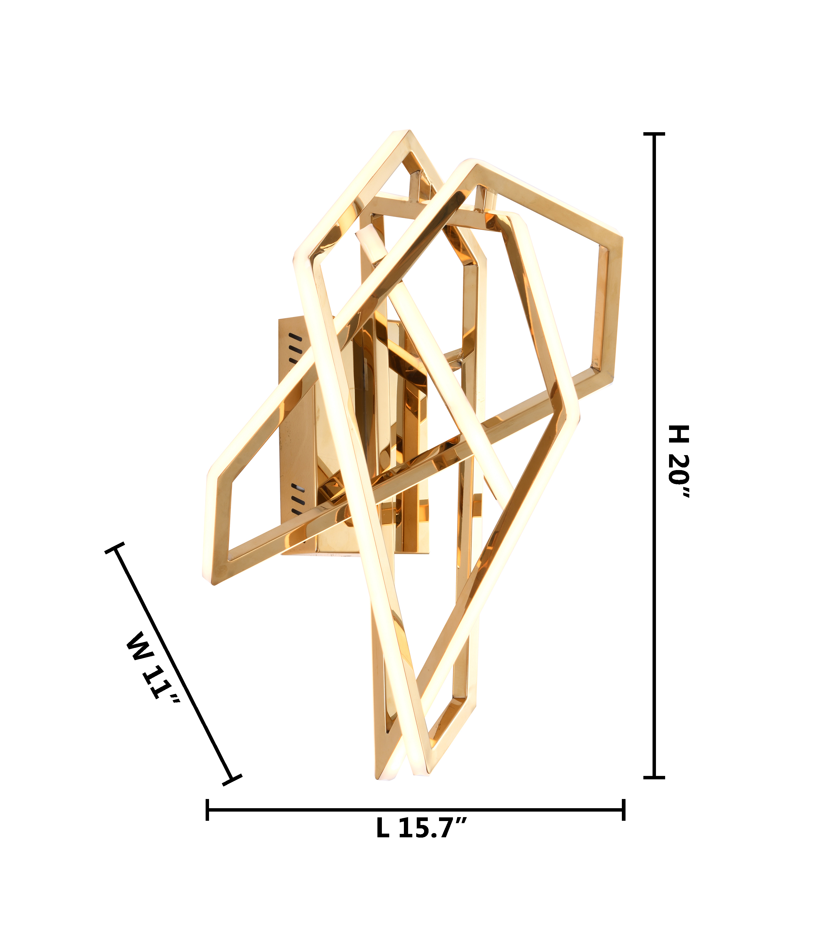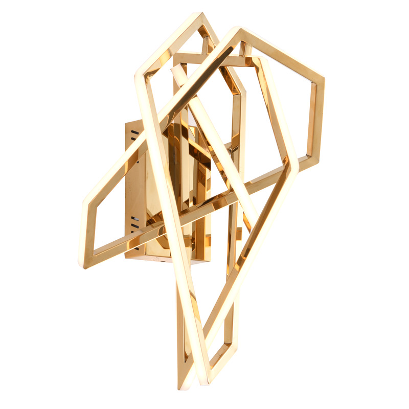 A GOLD STAINLESS STEEL GEOMETRIC WALL SCONCE WITH AN ACRYLIC DIFFUSER