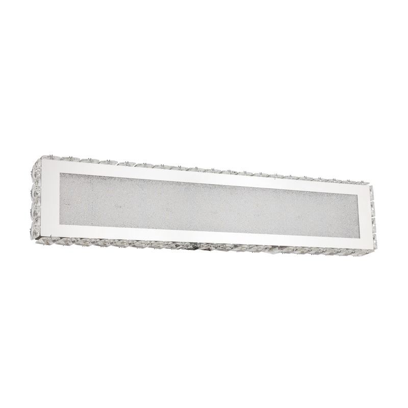 A CLEAR CRYSTAL WALL SCONCE WITH A BEADED FRAME AND CHROME HARDWARE
