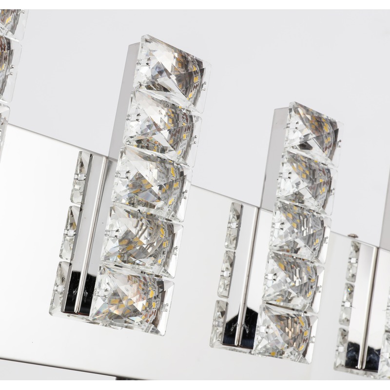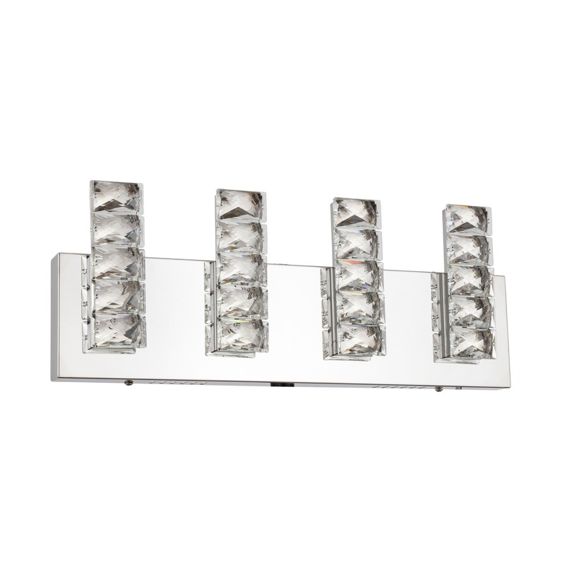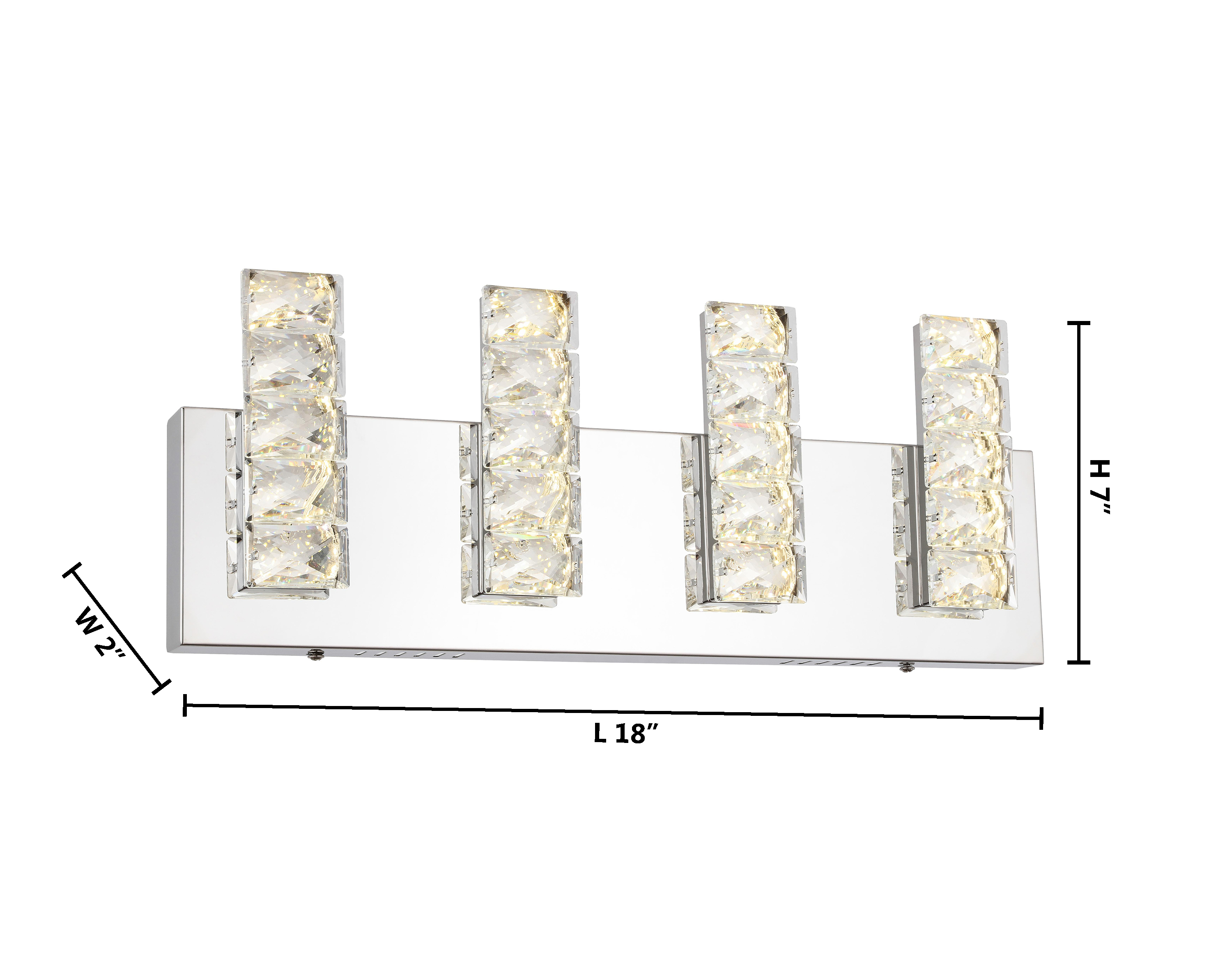A LED WALL SCONCE WITH CLEAR CRYSTAL PLAQUES AND A CHROME FRAME
