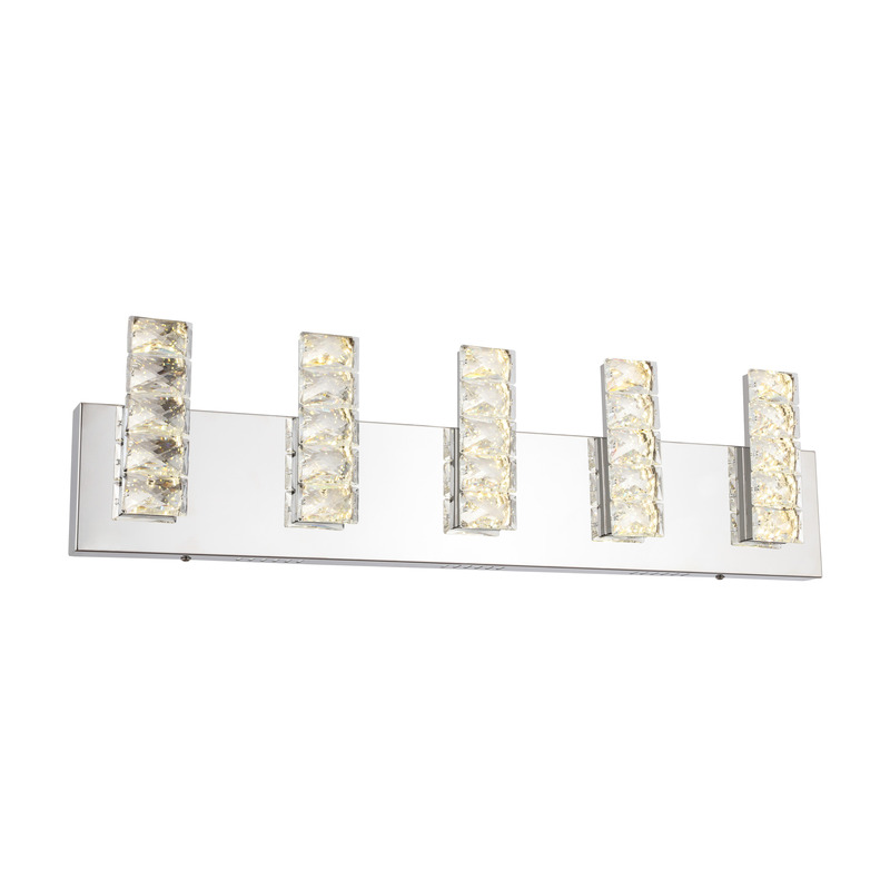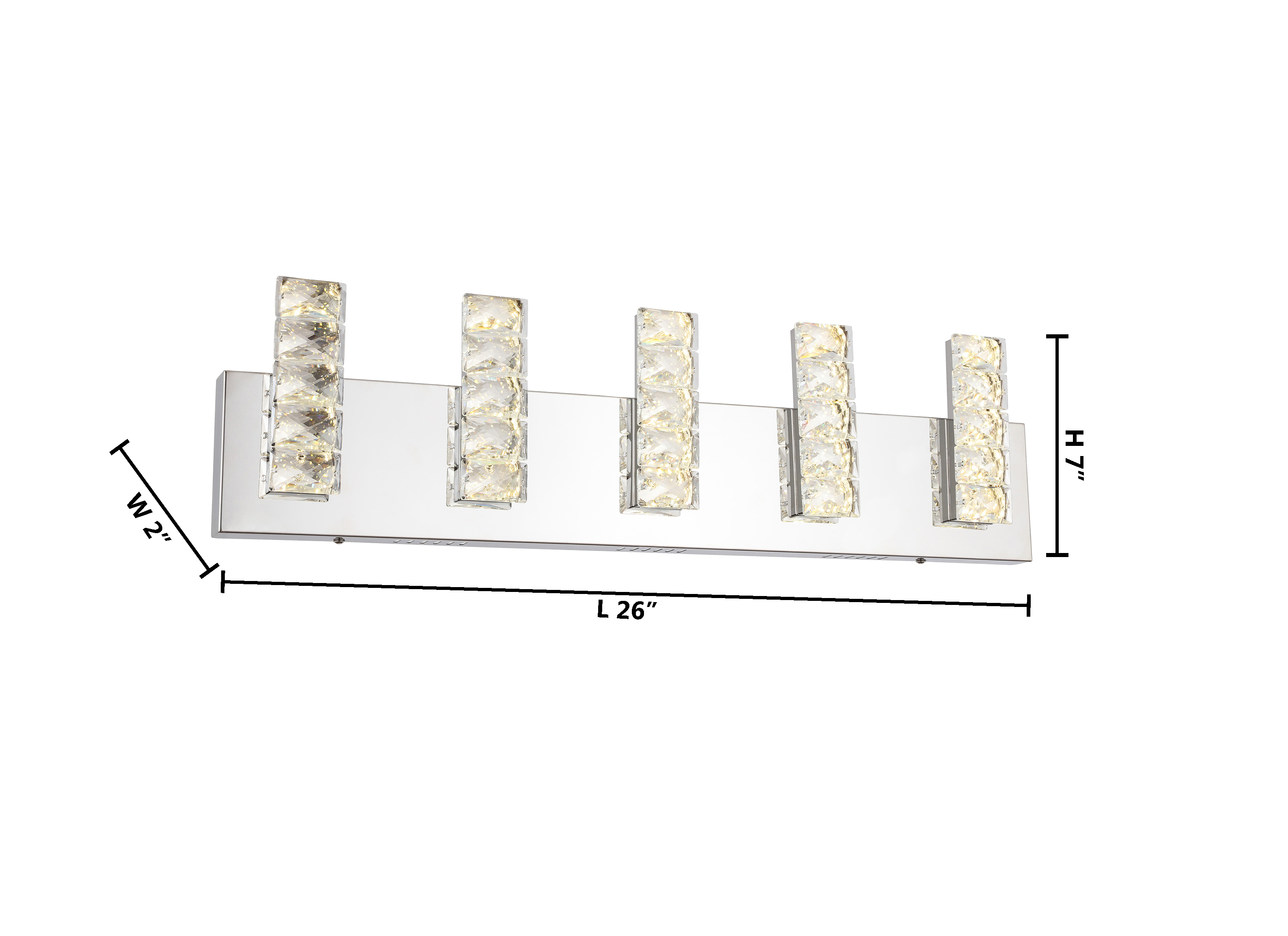A LED WALL SCONCE WITH CLEAR CRYSTAL PLAQUES & CHROME HARDWARE