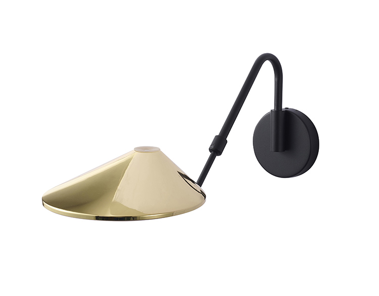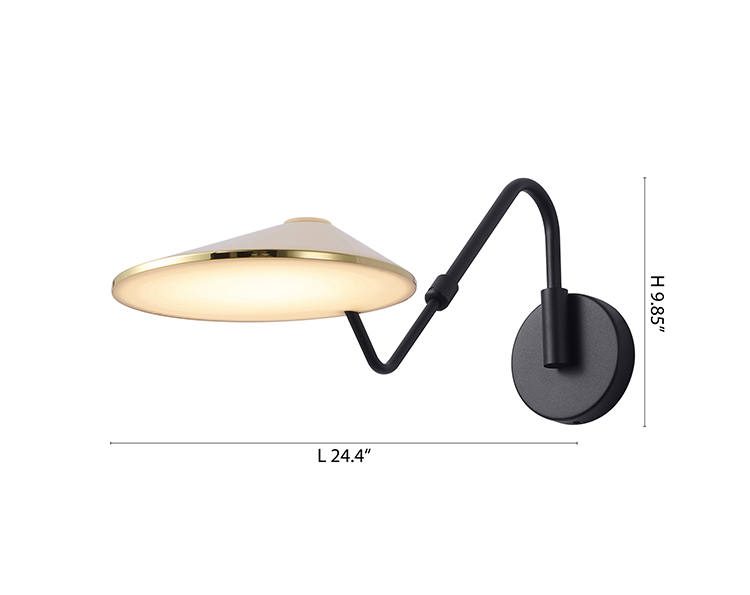 BLACK AND SHINNY BRASS IRON LED WALL SCONCE WITH A WHITE ACRYLIC DIFFUSER