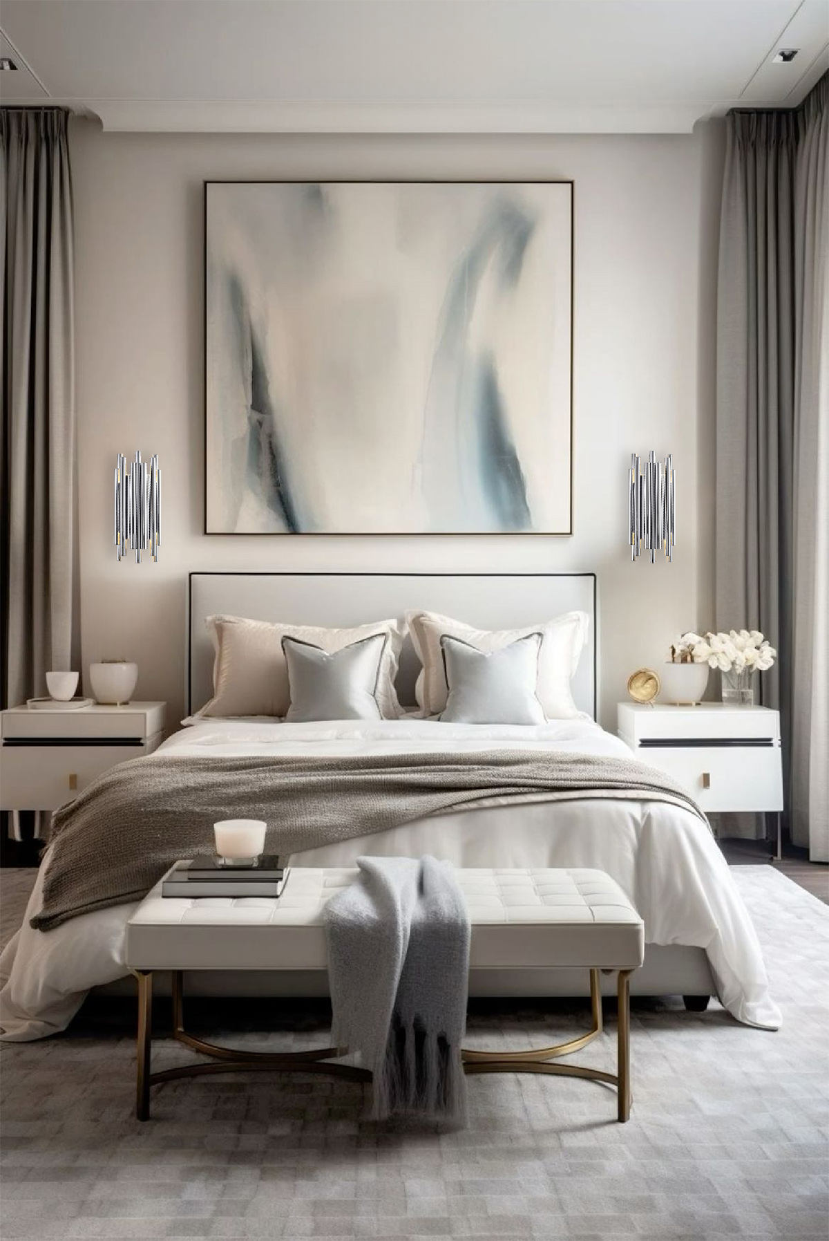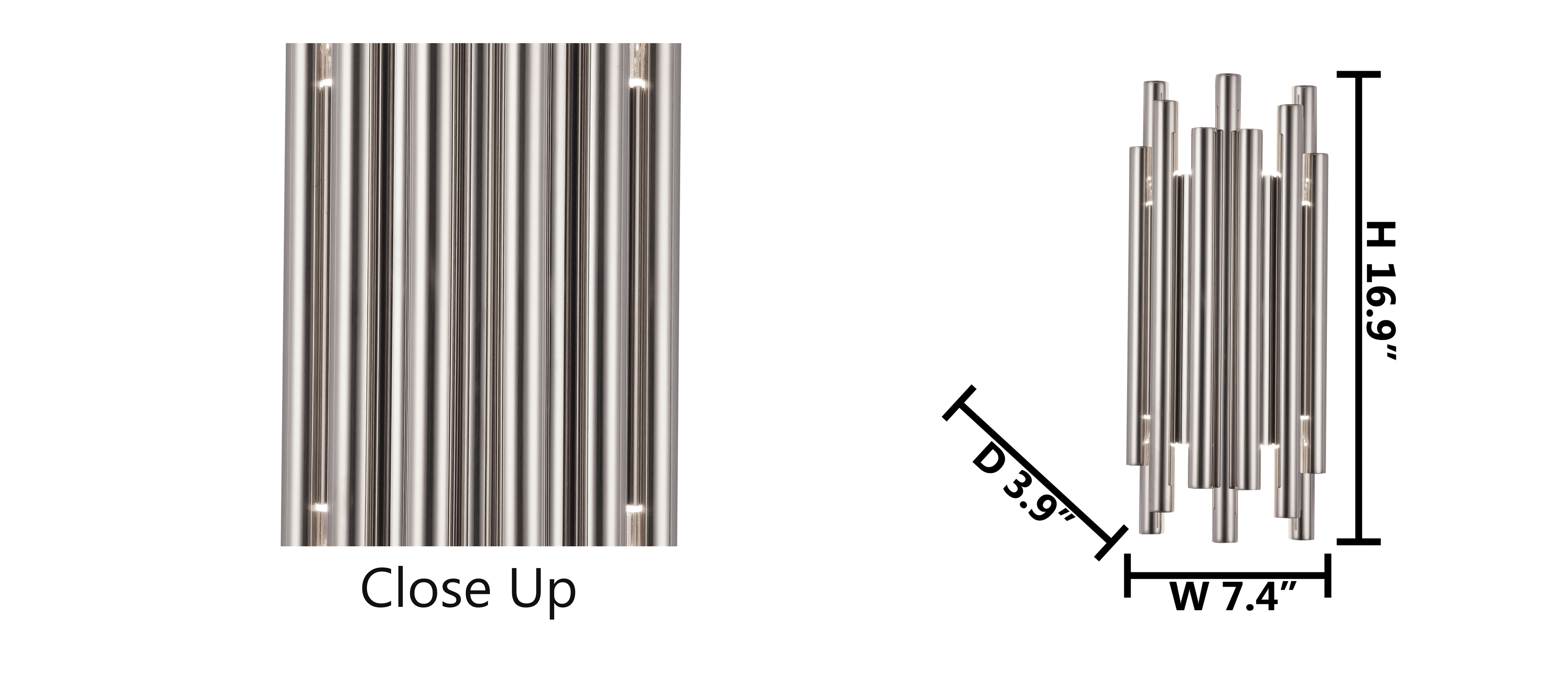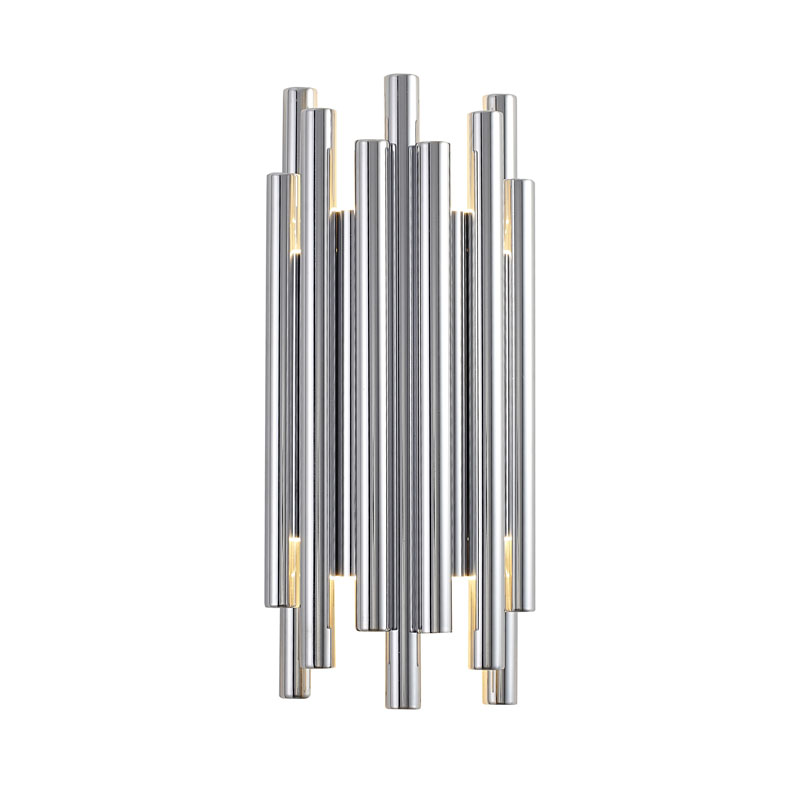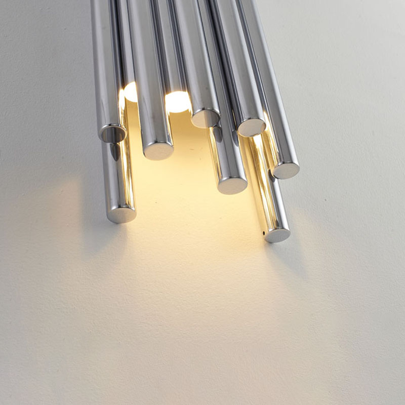 A CHROME STAINLESS STEEL LED ROD WALL SCONCE WITH UP/DOWN LIGHTING