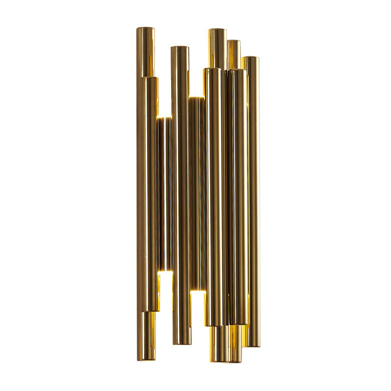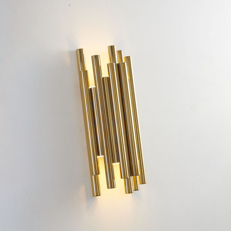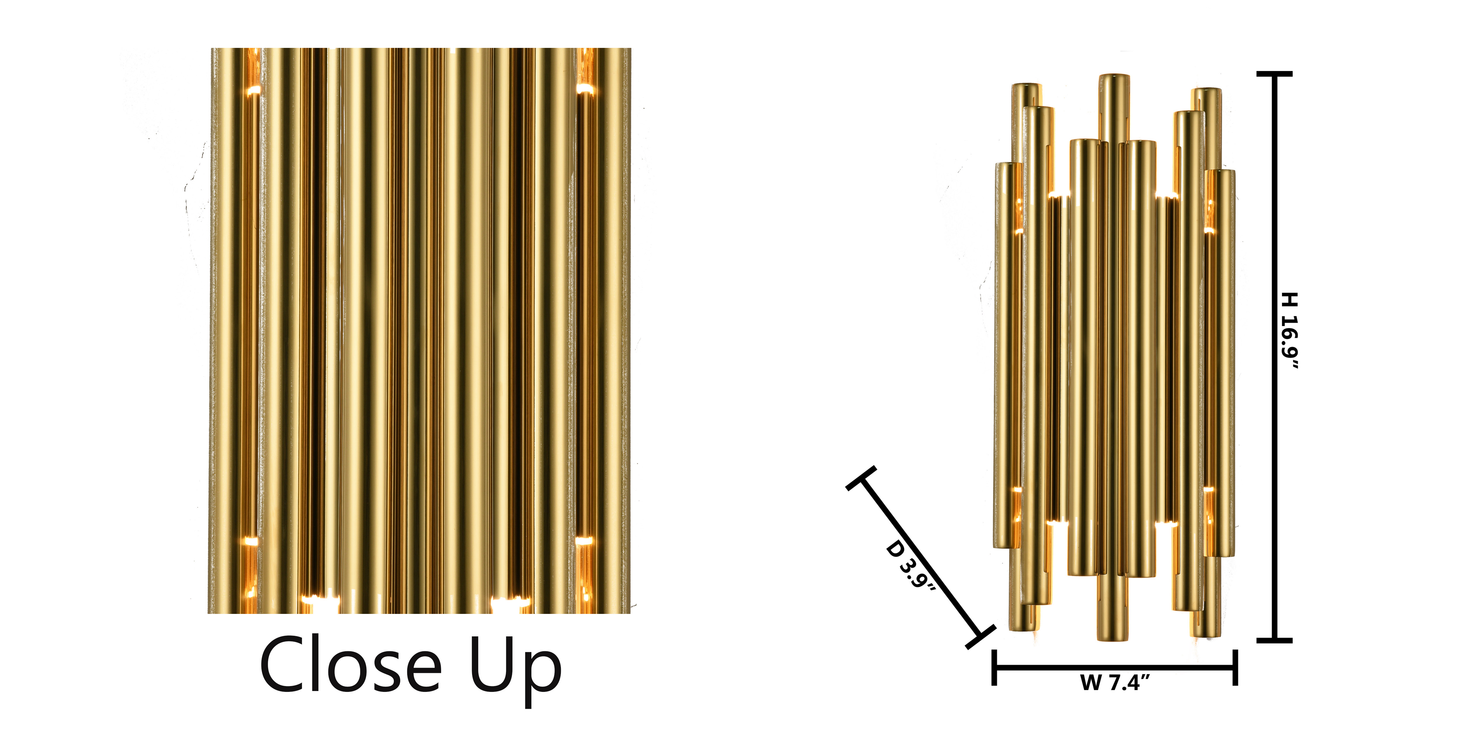 A GOLD STAINLESS STEEL LED ROD WALL SCONCE WITH UP/DOWN LIGHTING