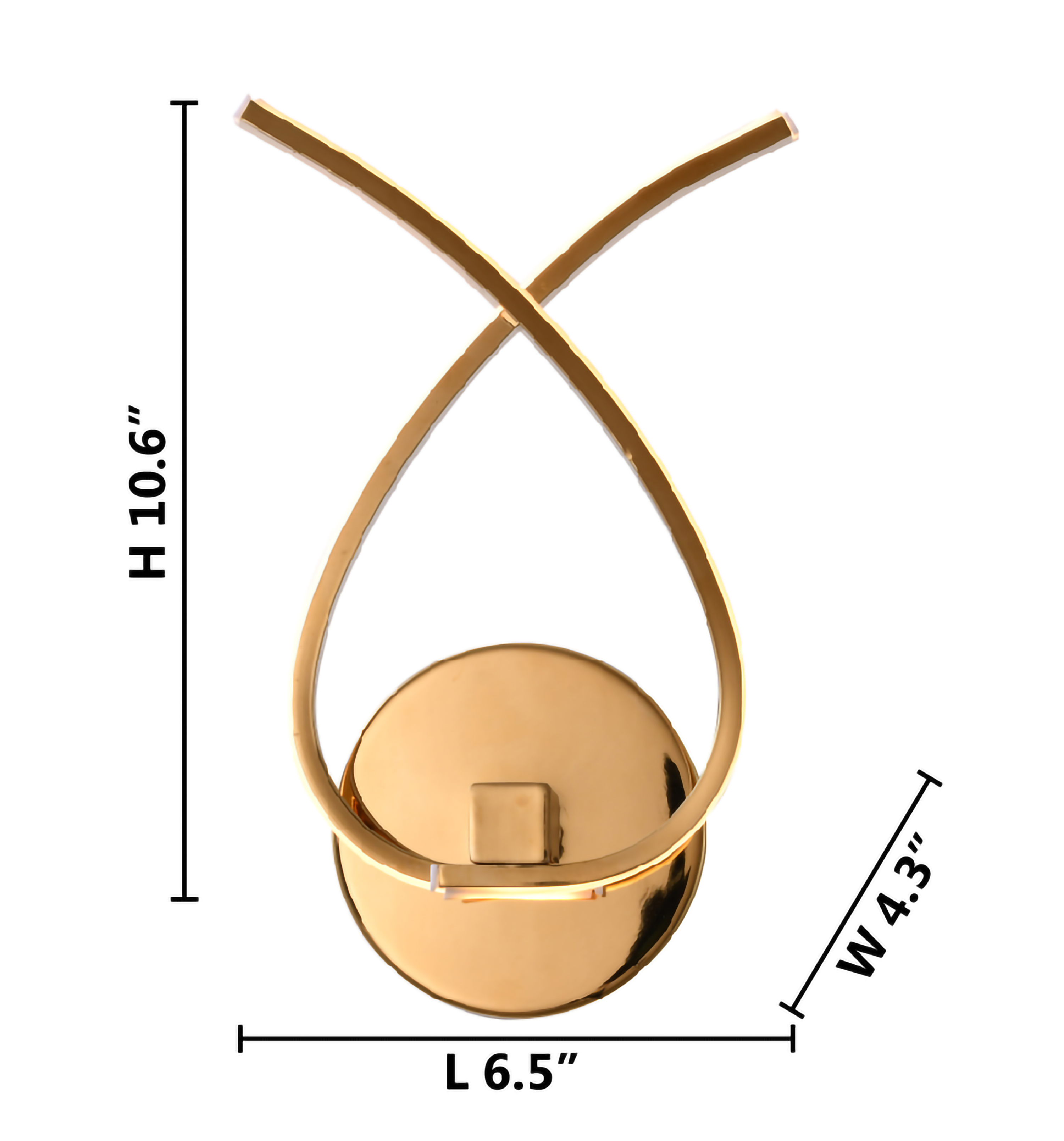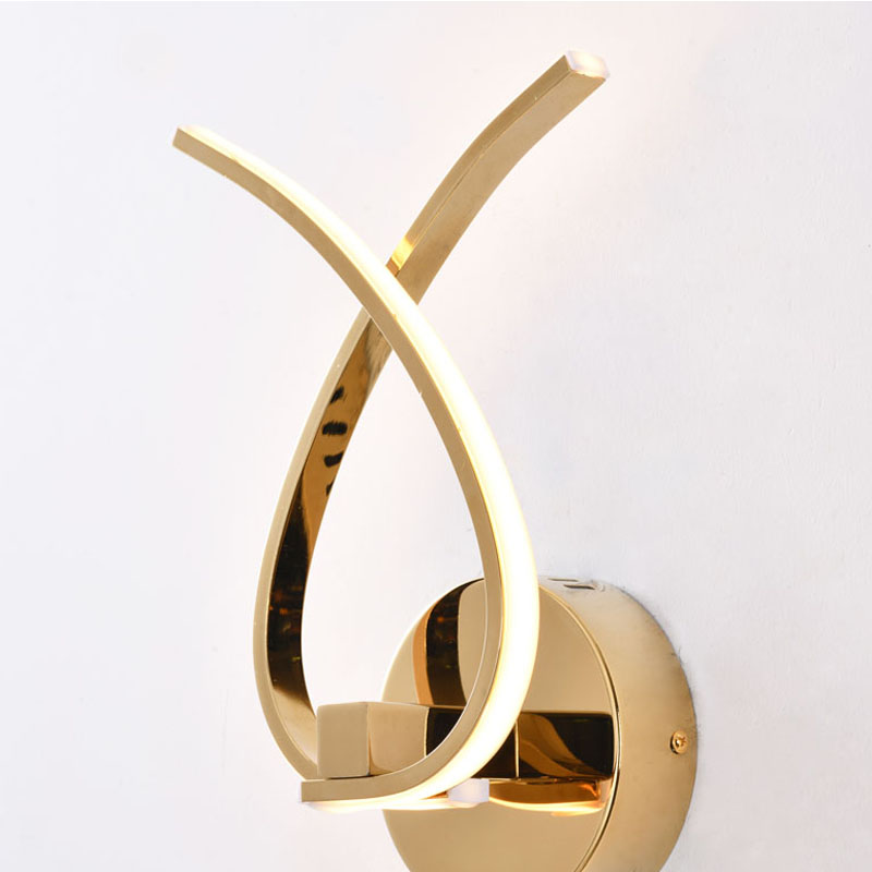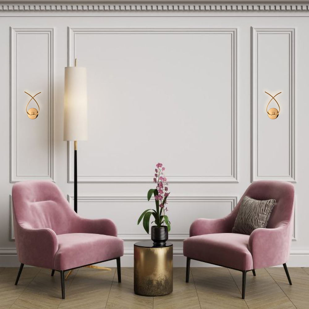 A GOLD TWISTED ARM LED WALL SCONCE WITH AN ACRYLIC DIFFUSER
