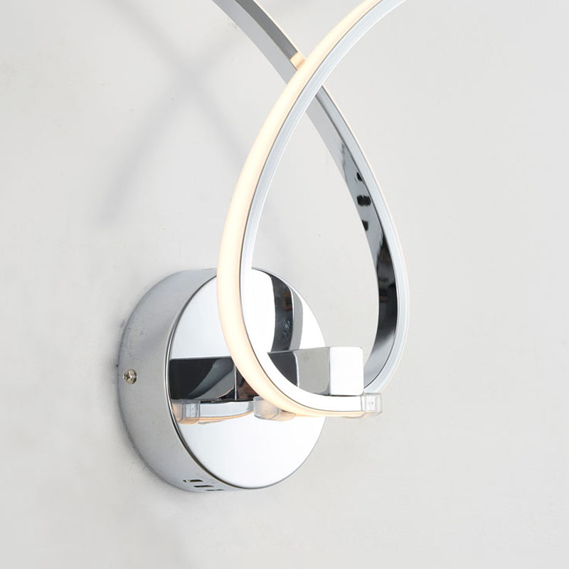 A CHROME TWISTED ARM LED WALL SCONCE WITH AN ACRYLIC DIFFUSER