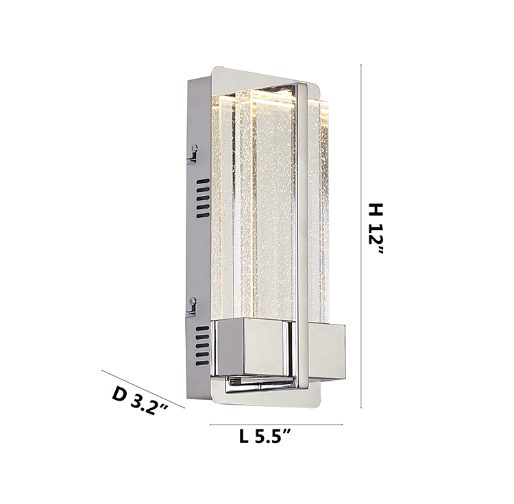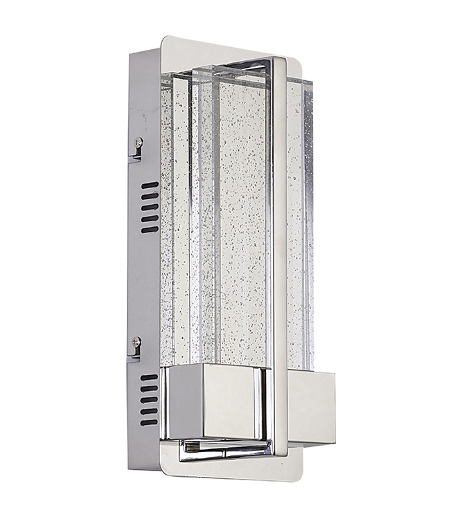 A CHROME FRAME LED WALL SCONCE WITH A CLEAR BUBBLE GLASS SHADE
